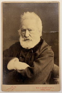 HUGO Victor : Célèbre retirage de la photo de l'écrivain par NADAR. Portrait de l'écrivain réalisé par NADAR (Felix TOURNACHON dit Nadar 1820-1910) sur carton épais avec en bas de la photo la mention Nadar rue d'Anjou et au dos, Nadar...