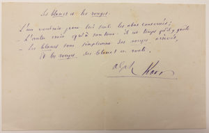 KARR Alphonse : Joli poème autographe à consonnance politique. Intitulé, Les blancs et les rouges. Billet in-12.