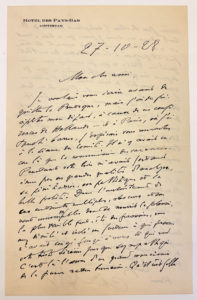 LE GOFFIC Charles : Lettre autographe signée et adressée le 27 octobre 1928 au dramaturge, Charles-Henry HIRSCH. Il le félicite pour son nouveau livre (sans doute Les jalouses), « c'est là l'oeuvre d'un grand connaisseur de la vraie nature...