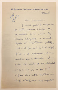 MAURIAC François : Lettre autographe signée et adressée le 27 septembre 1950. Il exprime à son interlocuteur belge sa gêne quant à des clauses d'édition signées par erreur. Une page in-12 recto verso.