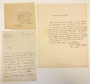 et les transports des engrais (1 pages in-12 recto-verso). Bernard LACEPEDE. Lettre autographe signée et adressée le 6 juin 1822 à Annibal MARROT. IL le remercie de leur soutien à lui et à son fils (1 page in-4) et Alexander HUMBOLDT. Lettre autographe signée et datée du 4 février 1837. Il évoque une expérience « faite en plaçant une jambe sous une pompe pneumatique ou elle tombe dans le vide). Billet in-16.