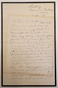 SULLY-PRUDHOMME René : Longue et intéressante lettre autographe signée et adressée le 14 juin 1891 à Roger MILES. Il évoque les corrections de son livre en rentrant dans le détail et dans la psychologie du correcteur. 5 pages in-12.