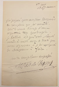 VIGNY Alfred de : Lettre autographe signée et adressée le 1er novembre 1847 à l'éditeur CHARPENTIER. IL évoque les corrections et coupes à faire pour la publication de ses oeuvres (Charpentier publiera en 1848 son théâtre complet). Une page...