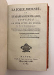 BEAUMARCHAIS Pierre Augustin CARON de : Très rare recueil de pièces de théâtre avec en E.O. le Barbier de SEVILLE (1775), La folle journèe ou le mariage de Figaro (1785) ainsi que d'autres pièces (DOUAT, DAVIGNY, BARTHE, Lettre modérée sur la...