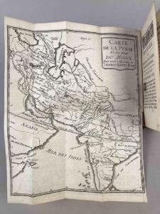 édition de cette biographie de Nadir Chah (1688-1747), dit Thamas Koulikan, l'un des plus grands rois de Perse a été publiée en 1740 en Hollande. Provenance : Bibliothèque humaniste du Morbihan.