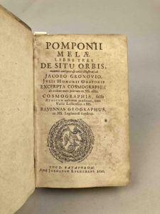 MELA, Pomponius (ler siècle après JC) & GRONOVIUS, Johann Friedrich (1611-1671). 3 ouvrages en 1 vol. in-8 (14 ff) 93 pp.- (14 ff) 67 pp., 112 et 128 pp.-(3 ff) lindex, dont 2ff : ont été placés par erreur dans la préface], 115 et 60 pp. Plein...