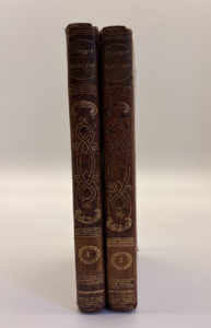 édition, orné de 8 gravures en noir et blanc, à pleine page et sous serpente (4 dans chaque volume).Deux volumes chacun relié pleine basane mouchetée, dos lisse orné aux fers, pièce de titre sur cuir vert, tomainson sur cuir orange, coiffe et queue de dos arasées, traces de frottements sur les plats et les coins, trois tranches jaspées quelques rousseurs éparses sinon frais dans l'ensemble.
