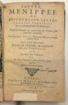 SONNET Thomas Sieur de COURVAL : Satyre, ménippée ou discours sur les poignantes traversés et incommoditez du mariage. Chez Jean Millot libraire Paris 1609 (Seconde édition et année de l'original). Complet du portrait en frontispice. Reliure...