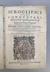 VALERIANO BOLZANO, Pierio (1477-1558) : leroglifici, overo commentari delle occulte significationi de gli Egittii, & d'altre Nationi composti per l'eccellente Signor Giovanni Pierio Valeriano da Bolzano di Bellune | Accresciuti di due Libri dal Sig....