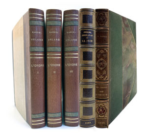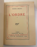 ARLAND Marcel : L'ordre. NRF Paris 1929. E.O. L'un des 109 ex de tête sur pur fil réimposés au format in-8. Trois volumes parfaitement reliés demi maroquin havane à bandes, dos lisse avec pièces mosaïquées, têtes dorées, couvertures...