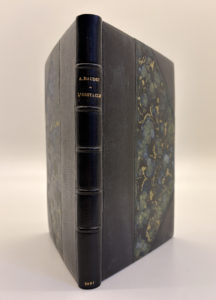 DAUDET Alphonse : L'obstacle. Flammarion Paris 1891. E.O. L'un des 10 ex. de tête sur Chine. Reliure in-12 demi chagrin noir à coins, dos à 5 nerfs, tête dorée, couvertures conservées.