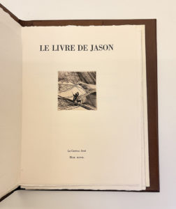 DEON Michel : Le livre de Jason. Le cheval aîlé Paris 1997. E.O. L'un des 64 ex de tête sur Arches, signé par l'auteur et l'illustrateur : George Ball. En feuilles in-8 sous chemise plein chagrin marron.