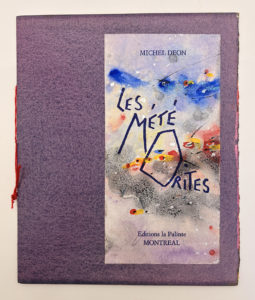 DEON Michel : Météorites. Imprimerie PIUF Paris 1995. E.O. L'un des 45 ex. sur Japon, seul tirage. Ex. signé par l'auteur et l'illustrateur Julius Baltazar. Bien complet d'une peinture originale de Baltazar. Broché in-12.