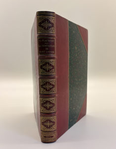 FLAUBERT Gustave : La tentation de Saint Antoine. Charpentier Paris 1874. E.O. sur papier d'édition. Reliure in-8 demi maroquin rouge à coins, dos à 5 nerfs richement décoré, tête dorée, couvertures conservées.