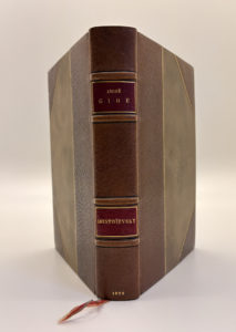 GIDE André : Dostoïevsky. Ed. Jonquières Paris 1928. E.O. L'un des 60 ex. de tête sur Montval. Reliure in-8 demi maroquin marron à coins, dos à 4 nerfs et pièce de titre sur cuir rouge, tête dorée, couvertures conservés.