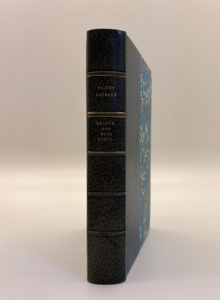 Reliure in-8 demi maroquin bleu canard, dos à 5 nerfs légèrement passé au vert, tête dorée, couvertures conservées. Très recherché.