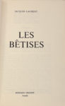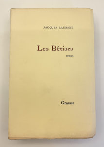 LAURENT Jacques : Les bêtises. Grasset Paris 1971. E.O. L'un des 64 ex sur Lana, seul grand papier. Broché in-8, très bel état. Un grand prix Goncourt.