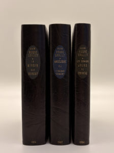 de titre ronde sur maroquin bleu acier, tête dorée, couvertures conservées (reliure signée Devauchelle).