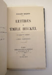 WAGNER Richard : Lettres à Emile HECKEL. Charpentier Paris 1920. E.O française. L'un des 20 ex de tête sur Hollande. Envoi du traducteur, Louis SCHNEIDER à l'éditeur FASQUELLE. Belle reliure in-12 à la bradel demi maroquin noir, dos lisse,...
