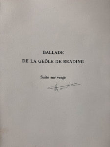 WILDE Oscar/FONTA Henri : Ballade de la geôle de Reading. Bibliophies et graveurs d'aujourd'hui 1950. Première édition illustrée de pointes sèches de Robert FONTA. Tirage à 110 ex. sur Rives, seul grand papier, celui-ci n°80 nominatif. Complet...