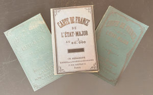 Suite de trois cartes dépliantes de France de l’État-Major. Deux par J.Dumaine et un par CH.DELAGRAVE.