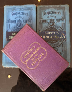 John BARTHOLOMEW and Co, Édimbourg. Deux cartes dépliantes en couleur, Islay & Oban. Joint : - Stanford’s Road and Railway map of Scotland carte dépliante. - Six cartes dépliantes Black’s Guide-Books Scotland.
