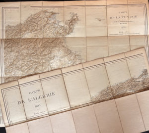 Service géographique de l’armée, 1895. Deux cartes dépliantes en couleur de l’Algérie et de la Tunisie, légendées. KRAKOW, 102, Faubourg Poissonnière carte dépliante en couleur de l’Algérie et de la Tunisie.