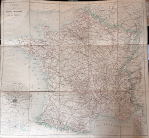 Regnier et Dourdet, Paris. Carte dépliante en couleur des routes impériales de France.