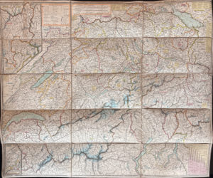 Suite de deux cartes dépliantes. - Carte dépliante en couleur de la Suisse, fin XIXe siècle. - Carte dépliante en couleur du Canton de Sion.