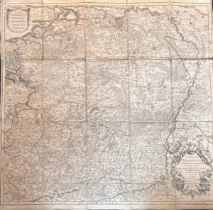 Ensemble de trois cartes dépliantes en noir et blanc et rehauts de couleur, comprenant : - Guillaume de L’isle rue des Noyers Paris 1780, carte du Brabant. - J.B Delaval 7 rue Geoffroy-Langevin à Paris, 1822 carte de département de la Somme...