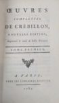 CREBILLON. OEuvres. Paris, Libraires associés, 1785. 3 vol.- In- 8 veau porphyre époque, dos à nerfs ornés et dor., fil. dor. sur les plats. Portrait de l'auteur et 9 figures gravées d'après Marillier. Quelques rousseurs.- CATULLE. Poésies....