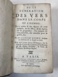 De la génération des vers dans le corps de l'Homme ....par Nicolas ANDRY. Paris, d'Houry 1700 In-12, veau époque (un peu usagé) dos à nerf orné et doré (deux planches) gravées repliées)