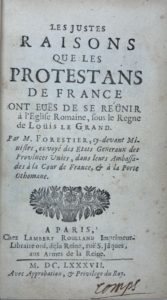 FORESTIER. Apologie pour les réunis ; ou les justes raisons que les protestans de France ont eues de se réunir à l'Eglise romaine sous le Règne de Louis Le Grand. Paris, Lambert, 1687. Petit in- 8 maroquin rouge de l'époque, dos à nerfs orné...