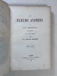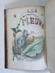 GRANDVILLE (J.J.). Les fleurs animées. Paris, Gonet, s.d. (1847). 2 vol. in- 8 demi- veau fauve époque, dos à nerfs finement dor. 2 frontispices gravés sur bois et 52 planches gravées sur acier coloriées d'après Grandville.