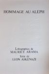 numérotés.- ARAMA (M.). Hommage au Aleph. Paris, 1972. Grand in-folio en ff sous chemise et emb. entoilés. 22 planches lithographiées numérotées et signées par Arama. (sauf la première) Un des 60 exemplaires sur vélin d'Ingres.- ARRABAL (F.). Quel mirage d'amour. Paris, Bussière, 1987.In- 16 en ff. sous portefeuille. Edition originale tirée à 40 exemplaires numérotés et signés par les auteurs comportant 2 pointes sèches in-texte ; celui-ci un des 6 exemplaires sur papier ancien enrichis de 2 dessins contenus dans un emboîtage portefeuille