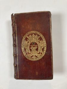 orné et doré, armes frappées en or au centre des plats, tranche dorée, court de marge au premier feuillet, sujet du frontispice gratté (usagé)