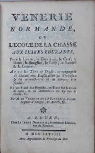 LE VERRIER DE LA CONTERIE. Vénerie normande, ou l'école de chasse aux chiens courants… Rouen, Dumesnil, 1778. In- 8 veau fauve époque un peu usagée, titre sur le dos à nerfs orné et dor. Seconde édition. 19 planches gravées, certaines sur...