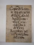 MANUSCRIT ITALIEN du XVIIIe siècle.- FAMILLE CARACCIOLO. Copie di Scrittura appartenenti all' Ecc Casa del Sig. D.Domenico Caracciolo Duca di Vietri. Regitrate nel presente Libro nel 1713. Petit in- folio broché. Le manuscrit sur papier vergé...