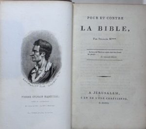 MARECHAL (S.). Pour et contre la Bible. Jérusalem, 1801. In- 8 demi- mar. citron à coins, dos à nerfs orné et dor., tête dor. non rogné (Thierry Sr de Petit- Simier). Edition originale. Portrait gravé.