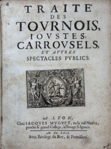 MENESTRIER. Traité des tournois, joustes, carrousels et autres spectacles publics. Lyon, Muguet, 1669. Pet. In- 4 veau brun époque usagé, dos à nerfs orné et dor. Edition originale et premier tirage. Fleurons, culs de lampe, lettrines et 22...