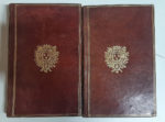 en prose dont le sujet est tiré du spectateur. 1777-2 vol. in 8 maroquin rouge, pièce de titre sur les dos ornés et dorés, filets dorés encadrant les plats avec au centre armes Royales frappées en or, tranches dorées, reliure de l'époque. Réunion rare de ces 4 textes dramatiques en édition originale de la marquise de MONTESSON, veuve d'un lieutenant général des armées du roi. Elle épousa secrètement le duc d'Orléans petit- fils du Régent. Elle organisa des fêtes et fit de son théâtre de la rue d'Antin un rendez-vous important de la société parisienne.