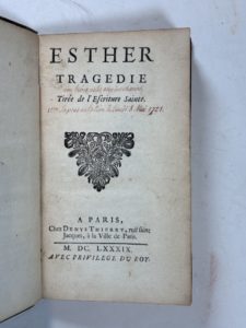 RACINE (J.). Esther, tragédie tirée de l'Escriture sainte. Paris, Thierry, 1689. Frontispice gravé à l'eau- forte (réduction de l'édition in- 4). Edition parue presque en même temps que l'originale in- 4. Annotations manuscrites anciennes sur...