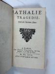 le titre.- Athalie, tragédie tirée de l'Ecriture sainte. Idem, 1692. Frontispice gravé à l'eau- forte (réduction de l'édition in- 4). Cette édition présente quelques différences avec l'originale in- 4 parue l'année précédente. Ens. 2 vol. in- 12 veau brun époque, dos à nerfs ornés et dor. (quelques usures à la reliure et tache brune sur le plat supérieur du second ouvrage). Editions originales in- 12.