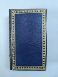SWIFT. Voyages de Gulliver. Paris, Didot l'Aîné, 1797. 4 parties en 4 vol. In- 18, mar. bleu- nuit à grain long, dos à nerfs ornés et dor. fil. et guirlande d'encadr. dor., dent. Grecque int. dor.tr. dor. (Canape). Frontispice et 9 figures...