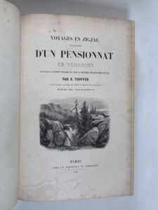 TOPFFER. Voyages en zigzag ou excursions d'un pensionnat en vacances. Paris, Dubochet, 1844. In- 8 demi- chag. marron époque, dos orné et dor. Premier tirage des illustrations hors et in texte. Rousseurs.- PARIS- LONDRES. Keepsake français...