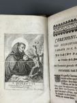 l'encre (poussière sur la rel., coiffe de queue et un coin usés). Rarissime édition originale de ce cérémonial édité et imprimé pour Marie-Madeleine de Clermont-Tonnerre (1631-1692), quarante-troisième abbesse (1672-1691) de Notre-Dame de St. Paul à Beauvais. Illustré d'une planche gravée sur cuivre montrant S. Benoît en prière (Herman Weyen excudit, avec pli d'origine sur la gravure), et d'un cul-de-lampe gravé sur bois p.231 et répété p.261. Nous n'avons relevé que deux exemplaires au CCFr (Archives Dép. de Beauvais) et un au Worldcat (Univ. d'Iowa). Provenance : Grand Séminaire de Beauvais (cachet au titre et répété aux 2 dernies f. et gardes) ; Jean Tremblot de La Croix (1893-1964), conservateur à la Bibliothèque de l'Institut de France, historien, héraldiste ; par descendance.