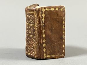 [Livre minuscule]. EXERCICE DU CHRÉTIEN. A Paris, chez Carouge, 1737. Minuscule (35 x 21 mm. ; 40 x 20 x 14 mm. reliure incluse), 187 p., [2] f., veau havane époque, dos lisse orné à la grotesque, titre doré, roulette dorée bordant les plats,...