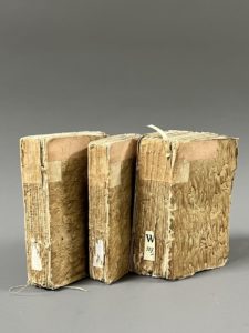 Ostermayeri (t.3 et 4), 1657-1659. 4 tomes en 3 volumes in-12, brochés, à toutes marges, couv. marbrées anciennes (dos usés fendillés, qq. défauts en marge ou modérés). Rare ensemble complet des 4 parties de ce recueil composé en l'honneur de la dévotion mariale, où sont décrits les principaux lieux de culte répartis en Europe et ailleurs. L'illustration gravée sur cuivre se compose d'un frontispice répété en tête de chaque tome, et de 100 planches montrant des représentations de la Sainte Vierge. [16] f., 217 p., [4] f. + [1] f., 207 p., [1] f., [3] f. bl. + [1] f., 170 p., [1] f. ; [1] f., p.173-285 ; 60 p. (index), 12 p. (catalogus). Provenance : Jésuites de Bourges (étiquette) ; de Chantilly (cachet).