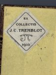 titre et roulettes dorées (dos frotté, coins émoussés, rousseurs). Provenance : J. C. Tremblot, 1910 (ex-libris gravé) ; Jean Tremblot de La Croix (1893-1964), conservateur à la Bibliothèque de l'Institut de France, historien, héraldiste ; par descendance.