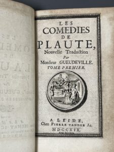 PLAUTE. Les comédies de Plaute, nouvellement traduites en stile libre, naturel et naïf par Mr de Gueudeville. A Leide, chez P. Van der Aa, 1719. 10 volumes in-12, basane havane époque, dos à 5 nerfs, pièces de titre et de tomaison rouges,...